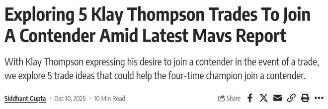 克莱想去争冠球队!美媒晒5笔交易方案:3换1赴湖人与东契奇重聚